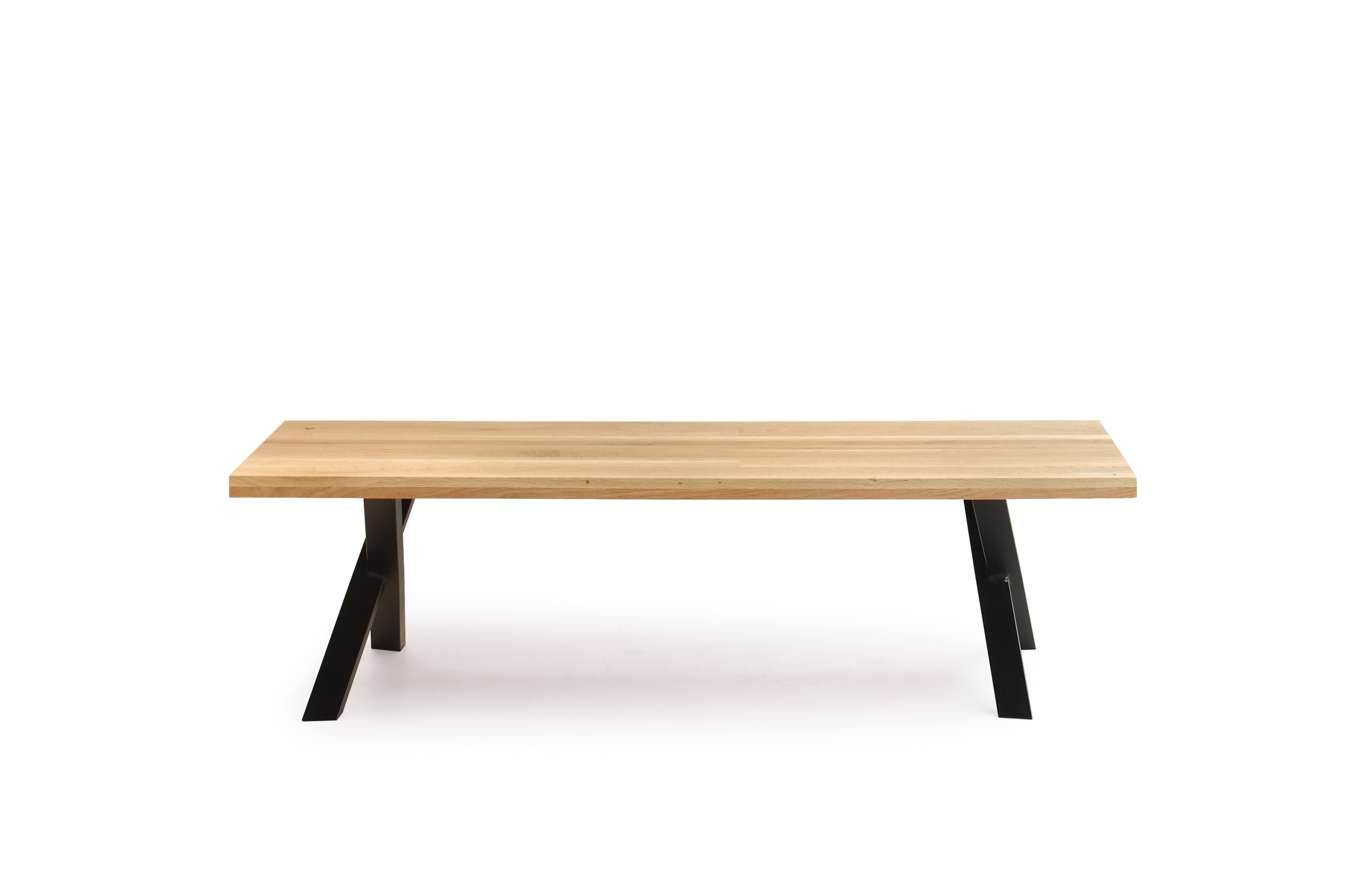 Solid wood seat 2 + 2 thick oak, painted metal legs.