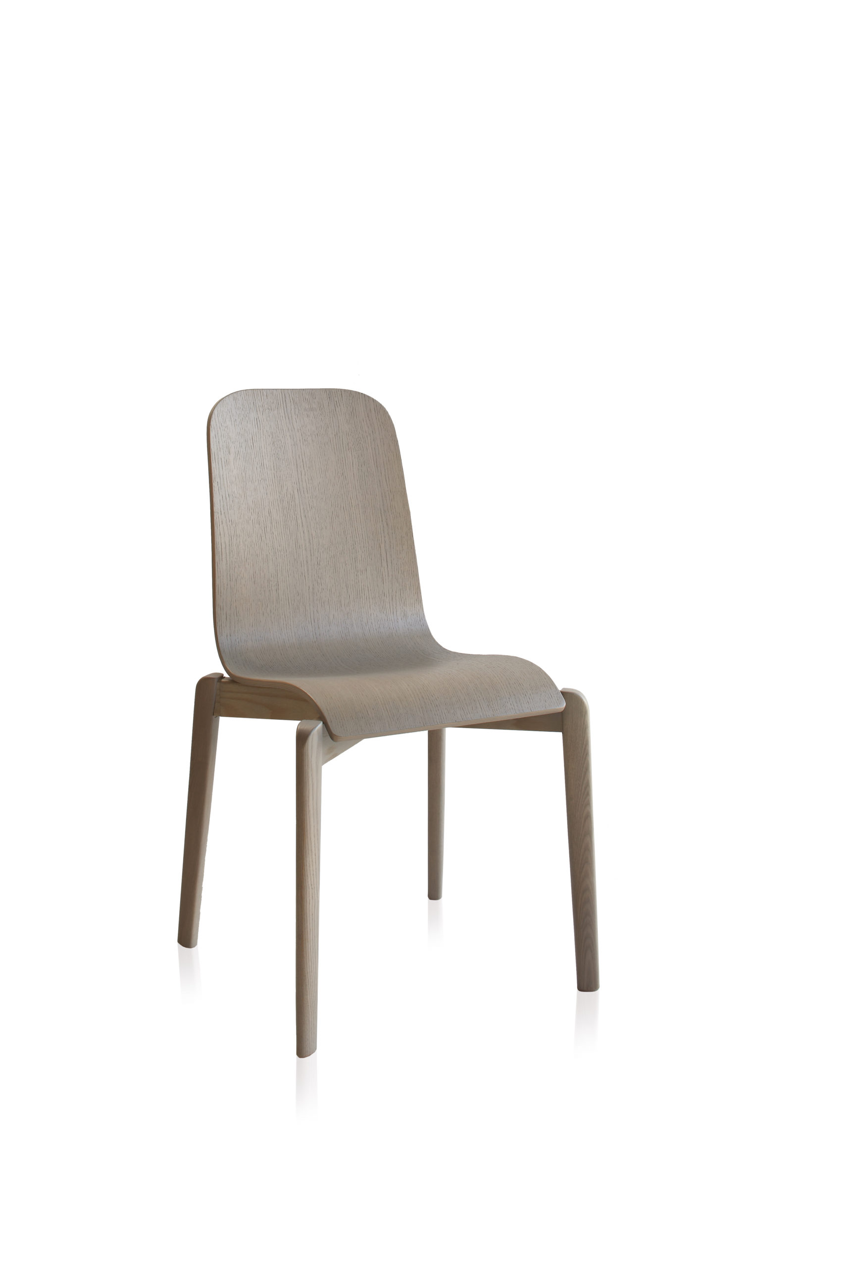 Sedia di design con struttura in legno massello di frassino olivato e scocca in multistrato placcato frassino olivato.