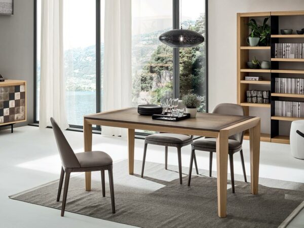 EN The table with solid square legs that can furnish any space with style and originality. The square-section solid wood legs ensure great stability and also offer the possibility of creating a pleasant two-tone contrast with the tabletop.